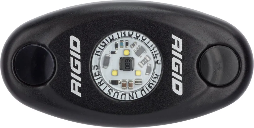 RIGIDs A-Series LED Accessory Light is a universal light that can be used just about anywhere. Vehicle cabs, boat cabins, work vehicle beds, under the hood of a vehicle and trunks are just a few of the places where the A-Series can provide handy bright lighting in otherwise dark environments. The A-Series has a durable compact aluminum housing and includes rubber flat-mount, 3M VHB permanent tape, 2 way pad for flat mounting, and radius tube-mount adapters, which provide side or bottom wire exits to accommodate different applications. It is lightweight, waterproof, and available in a variety of different LED colors in high and low power versions. The versatility of the A-Series makes it an easy installation on almost anything. Own The Night with RIGIDs compact A-Series LED lights.