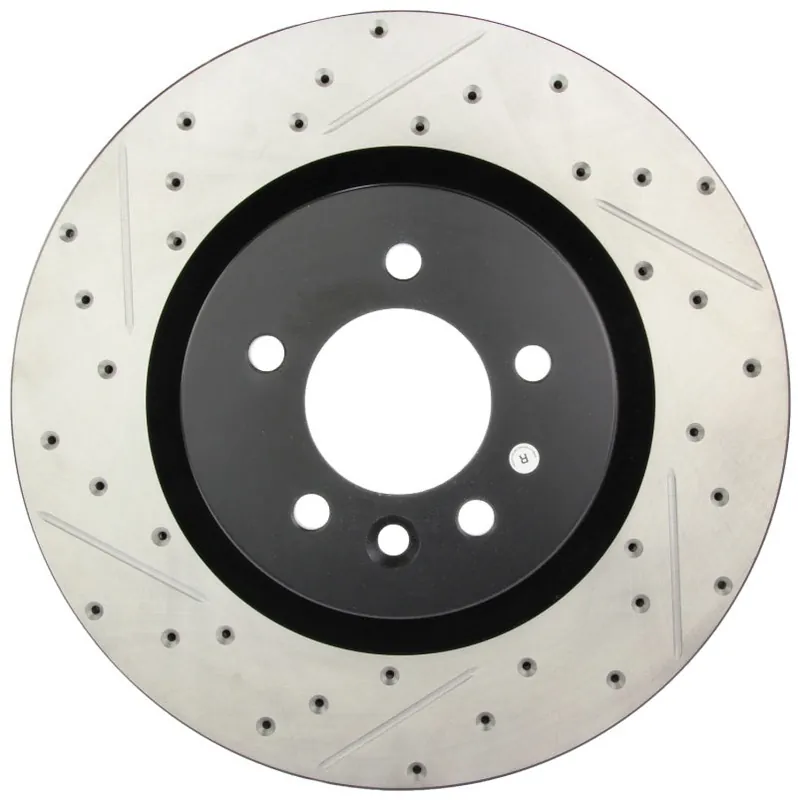 StopTech Drilled and Slotted Sport Rotors are 1-piece direct replacement brake discs for factory brake systems and stock calipers that look great behind your wheels – and offer significantly improved braking performance. The unique cross-drilling and slotting aids with heat and brake dust dispersal; prevents glazing of the pads; adds bite and improves wet and dry braking performance. Built to last; the black e-coating provides protection from corrosion and the high carbon metallurgy (in most applications) offers quieter operation; better crack resistance and increased performance.