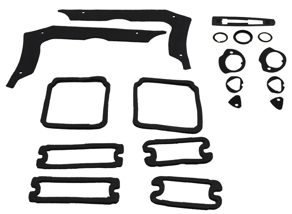 This kit restores sealing around doors, trunk, roof rail, and other body openings to keep your classic watertight, quiet, and factory-fresh.