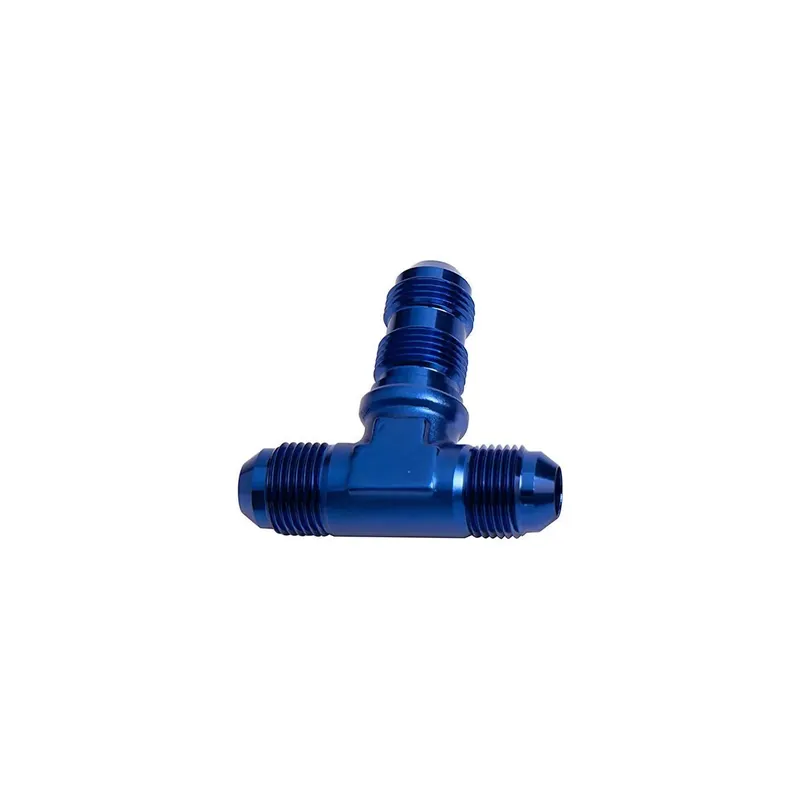 These AN tee bulkhead fittings allow you to easily and safely run you fuel/oil/water lines through a panel or firewall without worrying about rubber grommets and wearing through the hose. This AN tee-piece has the bulkhead section on the side and all ends are the same AN male flare size. Available in sizes from -3 all the way through to -20.