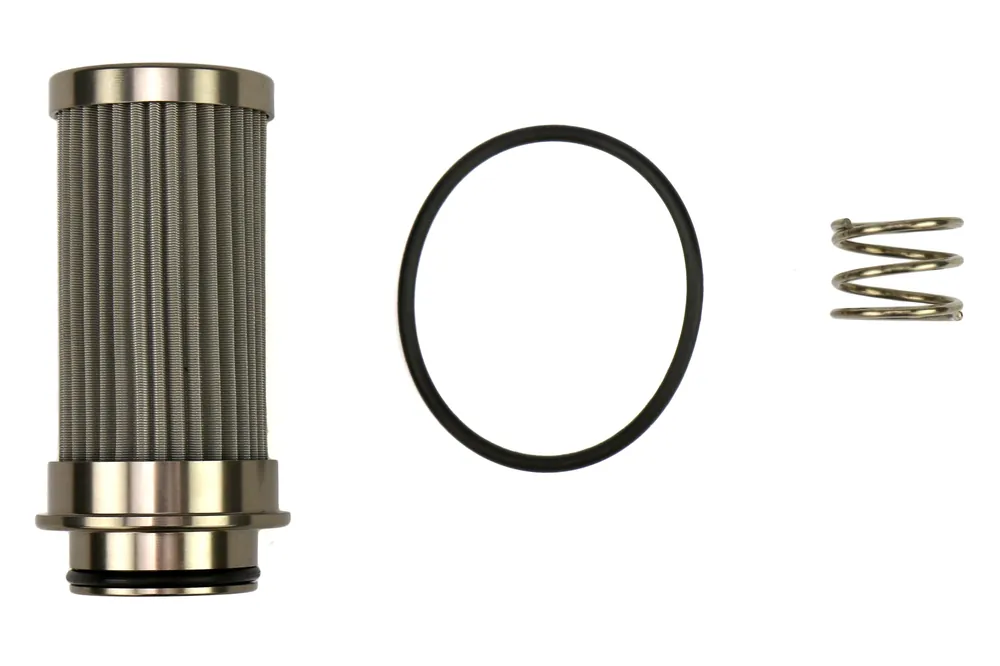 This is the Deatschwerks Fuel Pump Module Filter Element designed to be a direct fuel filter replacement. This filter features stainless steel 40-micron to help trap the smallest harmful elements. If you are experiencing misfires under boost and everything else checks out regarding boost leaks, injectors are working as they should and the tune and turbocharger are in order, then it could be something as slight as a fuel filter. A spring, and a new O-ring, will be included to make this filter ready for installation.