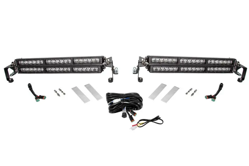 FeaturesRally-designed light bar mounting solution. Mount up to four 18″ Stage Series light bars.Fully customizable, adjust light bar angle and position. Quick release mounts for night stages with DZUS sliding lock fasteners. Highly durable 12 gauge powdercoated steel construction.Overview Designed for racing.The Motorsports LED Light Bar Kit from Diode Dynamics allows you to mount up to four SS18 Stage Series 18″ Light Bars on the hood of your vehicle. The whole kit includes everything needed for installation and uses stainless steel hardware for long lasting durability, including custom-made stainless rubber bumpers, which absorb vibration and prevent any damage to the hood. These purpose-built brackets were CAD-designed to provide the performance you need to Go Faster, and See Further.