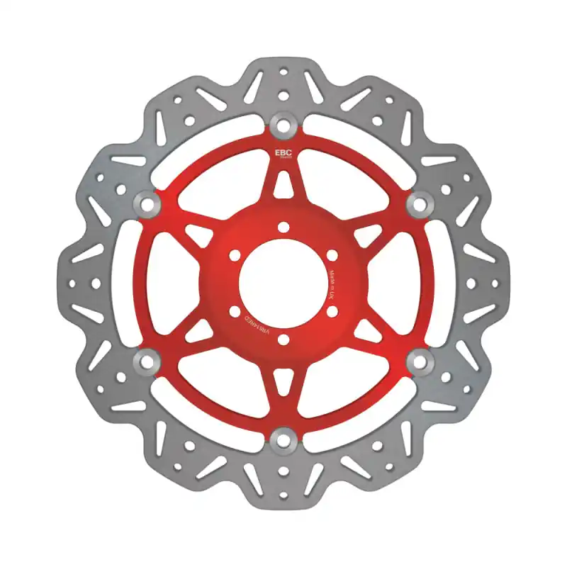 EBC Brakes™ Vee-Rotors™ Replacement Discs are British made discs using German mill rolled precision stainless steel rotor blades with a VEE profile weight reducing profile mounted onto lightweight alloy center hubs, using the patented SD square drive button technology.