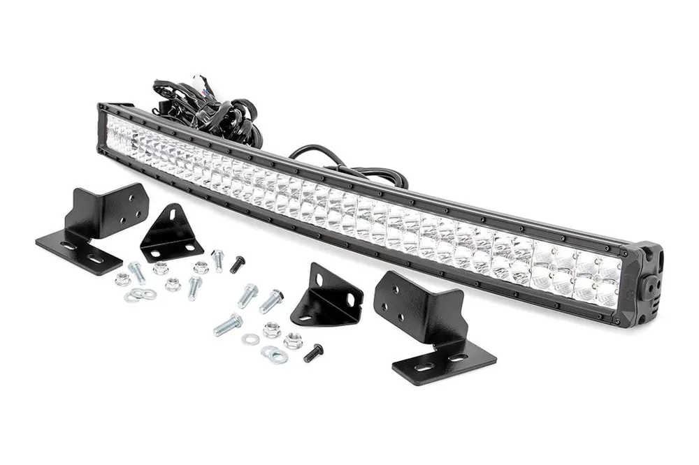 This easy-to-install mount attaches to the factory tow hook mounts with plenty of space to provide a perfect fit for Rough Country’s dual-row curved 40-inch LED Light Bar, available in black-series, chrome-series, or our bold X5 series for the exact look and lighting power you require.