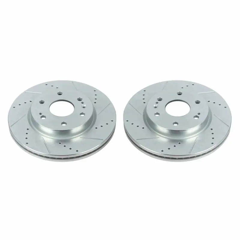 Power Stop drilled and slotted rotors provide a bolt-on upgrade for improved brake cooling and performance. Precision cross-drilled for maximum cooling and maximum performance during extreme conditions; rounded slots sweep away gasses, dust, and moisture to keep a clean friction contact patch on the rotor surface. Silver zinc dichromate plating resists rust and corrosion. With a direct OE fit, there are no special modifications needed.