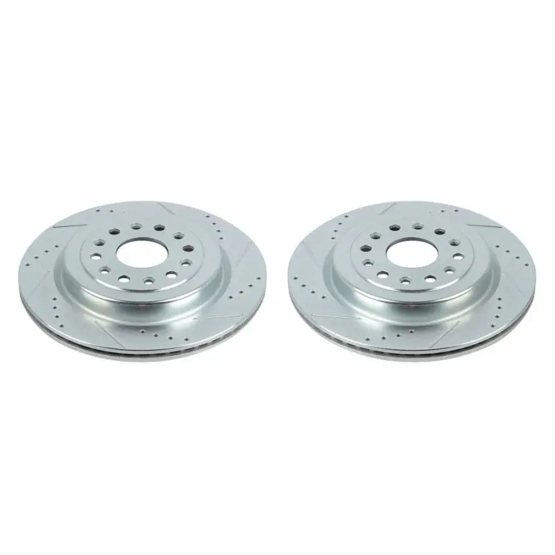Power Stop drilled and slotted rotors provide a bolt-on upgrade for improved brake cooling and performance. Precision cross-drilled for maximum cooling and maximum performance during extreme conditions; rounded slots sweep away gasses, dust, and moisture to keep a clean friction contact patch on the rotor surface. Silver zinc dichromate plating resists rust and corrosion. With a direct OE fit, there are no special modifications needed.