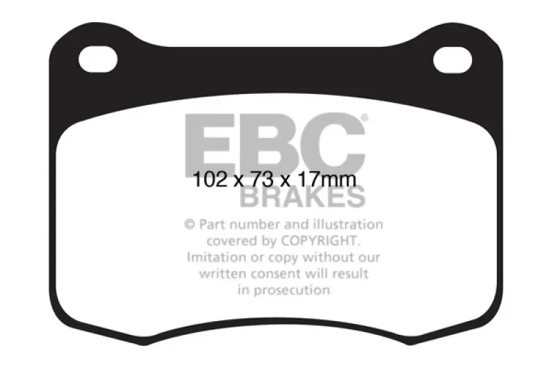 EBC Yellowstuff is an aramid fibre based brake compound with high brake effect form cold and is possibly one of the first ever compounds that can be used for STREET AND TRACK DRIVING. These pads do not require warm up but do get even stronger under the heat of hard driving. These are not a low dust pad and if your desire is for a low dust premium street use pad, you should consider EBC Redstuff.When considering full race use, Yellowstuff has been a strong favourite, having been used for two years in the Swedish Camaro Cup and at numerous other race events where a stock caliper system is fitted.It is also the choice of 90-percent of the Mazda MX5 Miata competitors in the UK race series and has an unblemished record as rotor friendly track pad for vehicles up to 2000 lbs weight or 200 BHP.In the USA the SCCA and NASA drivershave been testing Yellowstuff with feedback and good reports POURING in from a 543 test driver major market proving event with these groups. Read that figure again 543 test drivers.There is no guesswork here.