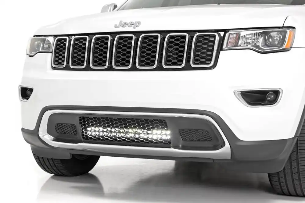 Add LED lighting to your Grand Cherokee quickly and easily with Rough Country’s 20in Hidden Bumper LED Kit! This easy-to-install solution lets you mount a 20in Rough Country Dual-Row LED Light Bar just behind the mesh opening in the front bumper.