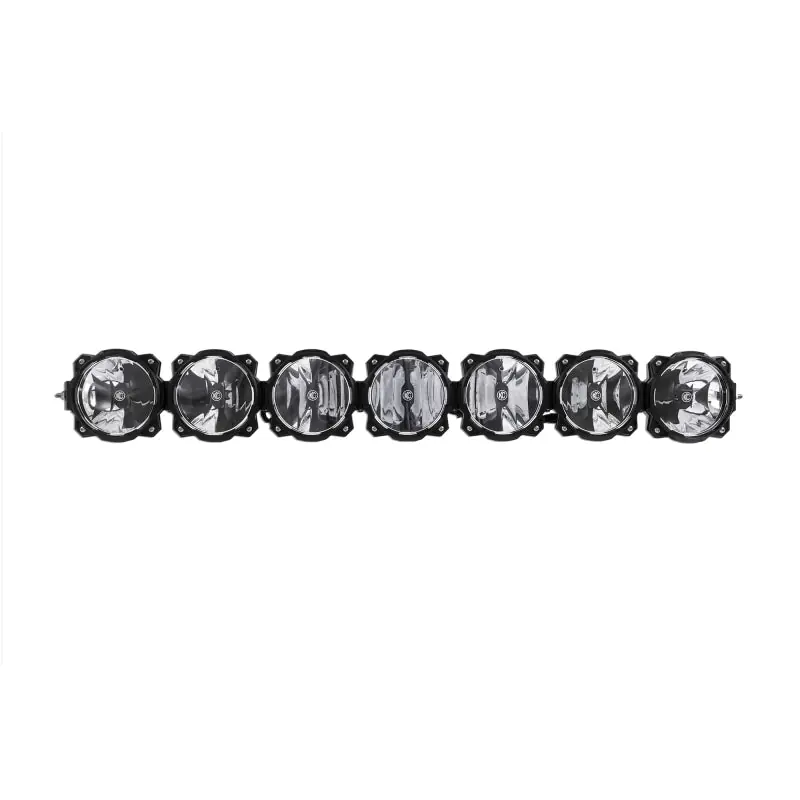 FEATURES-Powered by patented and powerful Gravity LED G6 optical inserts-Patent-pending Infinity Ring system enables the conversion of the Pro6 from straight to radius configurations in seconds (Patent-pending Application 14/704,736)-Signature KC modular design is expandable to different widths-High output, low amperage draw-G6 LED Optics available in Spot, Driving, Wide-40 Beam PatternsLIGHT PERFORMANCE-Raw Lumens: 16,100 lm-Lux @ 10 Meters: 6,100 lx-Candela: 6100,000 cd-Beam Distance (Meters): 1,562 lmSPECIFICATIONS-Wattage: 140W-Amp Draw: 11.41A-Voltage: 9-32V-Dimensions: H – 6.06″ x D – 3.33″ x W – 45.625″PARTS INCLUDED-(1) Pro6 LED Light Bar-Deluxe Plug-N-Play Wiring Harness w/30A LED SwitchPERFORMANCE Gravity LED OPTICSPatented Gravity LED G6 optical inserts provide exceptional efficiency and light output. Pro6 light bars ship with a combination of driving and wide-40 G6 optical inserts.INFINITY RING SYSTEM The Infinity Ring system provides a race-proven, adjustable linking system featuring expandable widths, modular beam shape and a radius or straight setting between each ring.UNIVERSAL END MOUNT SYSTEMThe Pro6 LED light bar comes ready to fit most standard LED bar widths and is designed with high-strength aluminum end mounts.This universal mounting design easily attaches to KC mounts on your Jeep, Truck or SUV.RACE PROVEN STRENGTH & DURABILITYInspired by endurance racing and tested by KC athletes worldwide, the Pro6 is set to break all performance barriers while providing the most durable, reliable and scalable LED light bar design available today.