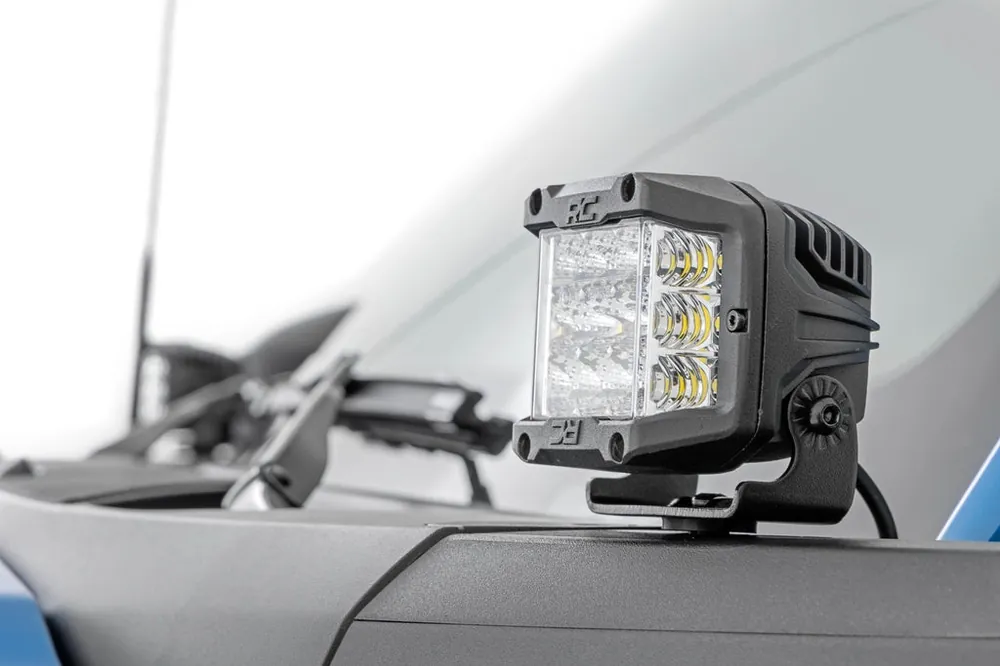 This easy-to-install mounting system is low profile and features a 100 percent bolt-on installation procedure, with no need for cutting or drilling needed. The LED Cubes tuck nicely along the base of the windshield and pack impressive lighting power.