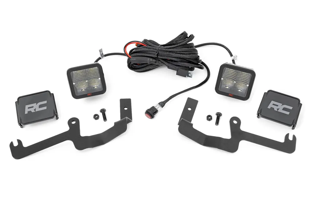 Illuminate the Night: Light up the night and conquer the trails with Rough CountryΓÇÖs Lower Windshield LED Ditch Mounts. Whether you’re off-roading after dark or navigating tough terrain in low light, these mounts deliver powerful side illumination to ensure you never miss a turn. Safely maneuver through any off-road situation without sacrificing visibility inside your cab.Easy Installation, Maximum Impact: Designed for convenience, this easy-to-install mounting system features a sleek, low-profile design with a 100% bolt-on installation – no cutting or drilling required. The LED cubes fit perfectly along the base of your windshield, providing impressive lighting power that shines where you need it most.Built to Last: Rough Country LED light cubes are built tough, with an IP67 waterproof rating to withstand the elements. Each set comes equipped with a premium, braided wiring harness featuring an in-line fuse and convenient on/off switch for seamless operation.Customizable Lighting Options: Choose from a range of options to suit your needs, including our Black Series LED Pods, OSRAM Pods, Spectrum Series, and DRL options for enhanced visibility and style on every ride.Worry-Free Performance: Plus, enjoy peace of mind with Rough CountryΓÇÖs 3-year LED warranty, ensuring reliable performance for years to come.