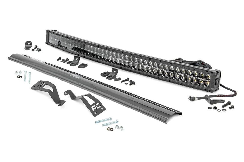 Light up the trails. Equip your Can-Am Commander/Maverick with Rough Country’s incredibly powerful Cree LED light bars. This handy solution includes everything you need to upgrade your Can-Am UTV with a 40-inch LED light bar in the perfect, forward-facing position for off-road illumination.\\Impressive Illumination. Rough Country’s Front-Facing LED Kit┬áoffers two options to equip your vehicle with the much-needed lighting that you desire. Rough Country’s single-row led boasts 16000 lumens or you can opt for our dual row that provides up to 36000 lumens allowing you to stay out on the trails long after the sunsets! These all-weather lights feature a durable, IP67 Waterproof, die-cast aluminum housing and include a premium wiring harness with a toggle switch and in-line fuse.\\Installation. With minor drilling required for installation, installing this LED Kit couldn’t be easier. With an estimated timeframe of 1-2 hours this full kit can be installed at home using standard tools and can be completed efficiently and quickly!\\Limited Lifetime Replacement Warranty. Rough Country’s 40″ Front-Facing LED Kit is backed with a limited lifetime replacement warranty towards manufacturer defects. As such, the product is protected from structural and workmanship damage after the date of purchase. With our industry-leading warranty give yourself peace of mind when using Rough Country’s Suspension products!