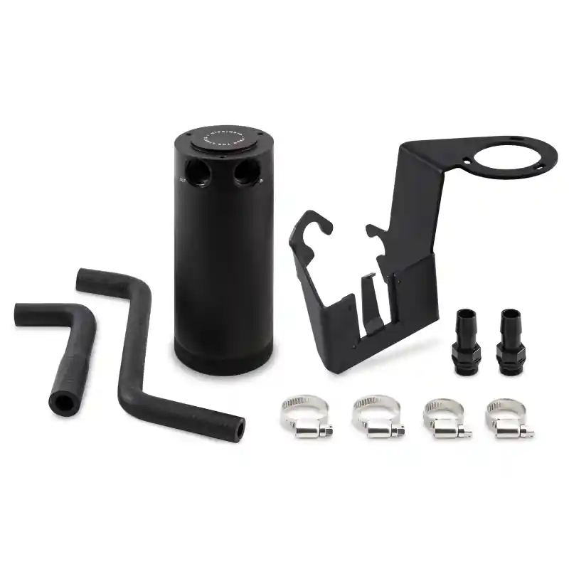 The VQ35DE has long since been the workhorse under the hood of plenty of Nissan and Infiniti products, so give those intake components the protection they deserve with the Mishimoto 2003-2006 Nissan 350Z and 2004-2007 Infiniti G35 Direct Fit Catch Can Kit. These cars were built to be driven to their limits, but the unfortunate side effect of those harsh driving conditions is blow-by., which makes its way back through the intake system, and can build carbon on these components, reducing the power and efficiency of your G or Z. Our complete kit utilizes a single 6061 aluminum tall catch can that mounts in line with the VQ35DE?s PCV system using chemical resistant, OEM style flat black hoses and CNC-machined aluminum fittings. Our can is secured with a sturdy, application specific bracket which also doubles as a new mount for your Nissan or Infiniti?s power steering reservoir. Where our 350Z and G35 Direct Fit Catch Can Kit adds a layer of stylish protection to your engine bay, It’s what?s on the inside of the can that counts. Our tried and true internal baffle is specifically designed to aid in the condensation and collection of oil droplets and fuel vapors passing through the PCV system. We’ve also incorporated internal air diverters to ensure a smooth and constant flow of the PCV pressure through our catch can. As an added line of defense, each one of our catch cans has a 50-micron bronze filter installed to trap any potential rogue oil droplets from escaping into the return line. Each one of our cans are sealed with Viton O-rings to ensure what?s collected in our catch can stays in the catch can. Finally, every one of our 2003-2006 Nissan 350Z and 2004-2007 Infiniti G35 Direct Fit Catch Can Kits is shipped with the Mishimoto Lifetime Warranty. Our catch cans are different from most air-oil-separator (AOS) systems on a few levels. First, our catch cans are not heated. This means that all of the blow-by is able to condense in the can, inclu
