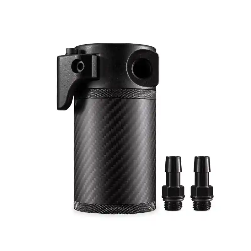 Here at Mishimoto, we don’t believe in good enough. In fact It’s quite the opposite. We strive in taking our products to the next level, and living by our mantra, Push the Limits. It’s this attitude along with months of testing and development that has lead us to our newest patent pending carbon fiber catch can. We’ve taken every bit of engineering that we put into our compact catch can, and took it to the next level. For starters, we increased the size of the can to a 7.4 fluid ounce capacity. We’ve also constructed the can’s body from 3K carbon fiber, reducing the weight but also maximizing your engine bay’s aesthetic. Our carbon fiber catch can doesn’t only look the part, it acts the part. We’ve incorporated a uniquely designed baffled insert which makes short work of separating oil and blow-by contaminates from your PCV system. The clean air is routed through our high-flow filter material, which acts as a safety net against any rogue oil droplets without compromising the improved airflow characteristics, even in freezing temperatures. We’ve also taken the hassle out of checking the fluid level and servicing your catch can by incorporating a quarter-turn lid. Servicing is now as easy as a flick of the wrist. We also ran several tests to ensure that our improved design would capture harmful blow-by on just about every engine configuration, and put the carbon fiber body to the ultimate test of 100,000 pressurization cycles.The carbon fiber catch can and filter are both fully serviceable, and also includes the Mishimoto Lifetime Warranty to ensure long lasting protection for your vehicle.