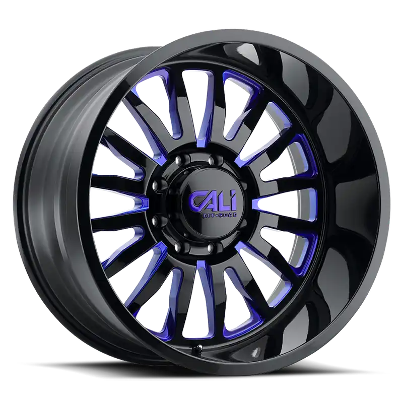 Modern Cast Aluminum Wheels Summit 9110 GB-BL 20×12 Blue Milled Spokes Gloss Black 6 On 139.7 Bolt Pattern -51 Offset Cali Offroad Wheels