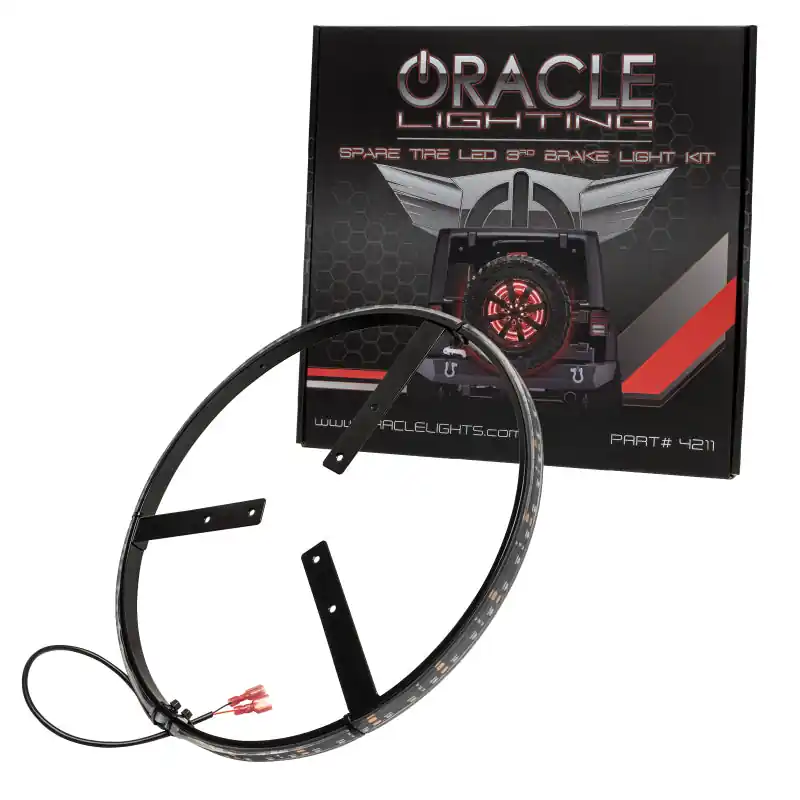 You asked and we listened! Introducing the ORACLE Lighting Illuminated Wheel Ring Brake Light. Using our popular aluminum wheel rings and our industry standard 2835 LED illumination you, you can now ADD a fully functional 3rd brake light Ring to your Jeep. The extended brackets mount to the spare tire carrier and the wiring is easy- simply tap into your existing 3rd brake light wire and install with the provided hardware.