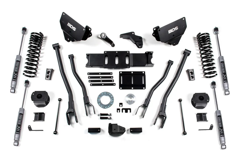 Built to outperform, BDS Suspension engineered a 6-inch lift kit with 4-Link conversion for your 2014-2018 RAM 2500 diesel powered truck that will surely impress. Works on factory air ride trucks only. Designed to improve stance, performance, and capability, this kit includes everything necessary to set your truck up right with clearance for up to 37″ tires.
