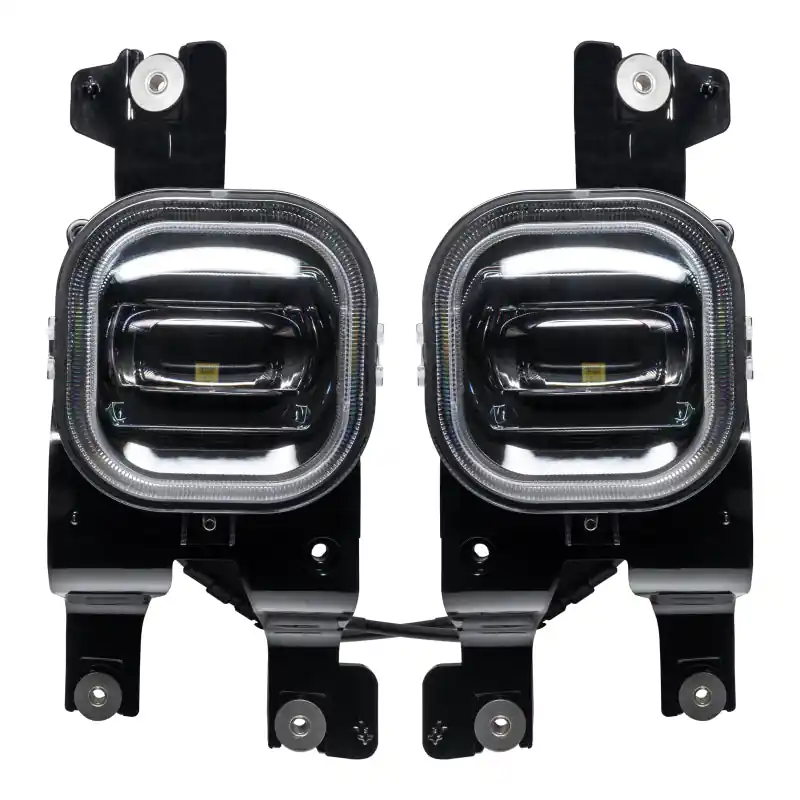 This is a pair of direct-replacement High-Performance LED Fog Lights for the 2008-2010 Ford Superduty truck applications. These direct-fit fog lights feature factory mounting and plug-and-play wiring connections for easy, trouble-free installation. These amazing LED units push out approximately 1500 lumens which will vividly light up the road while only drawing 15W of power per light. The new rugged solid-state LED design can operate in the worst possible conditions. Each light utilizes a durable PMMA lens and Polycarbonate lamp housing to withstand impact. The solid-state LED emitters withstand the worst shock and vibration while the epoxy-sealed electronics prevent moisture and corrosion. The aggressive blacked-out look gives your vehicle a modernized appearance and improves night-time visibility at the same time.