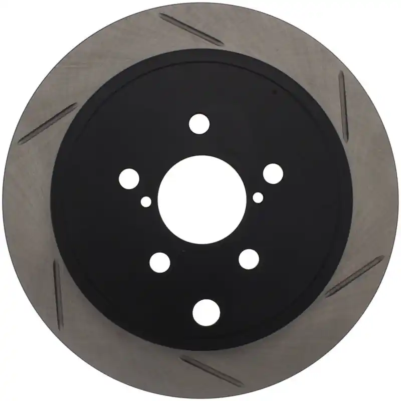 StopTech Slotted Sport Rotors are 1-piece direct replacement brake discs for factory brake systems and stock calipers that look great behind your wheels – and offer significantly improved braking performance. The unique slotting aids with heat and brake dust dispersal; prevents glazing of the pads; adds bite and improves wet and dry braking performance. Built to last; the black e-coating provides protection from corrosion and the high carbon metallurgy (in most applications) offers quieter operation; better crack resistance and increased performance.