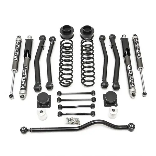 To finalize the ideal Terrain Flex Lift Kit, we have partnered with Falcon to include Falcon 2.1 mono tube performance shocks designed specifically for the JT Gladiator. When you combine all of our great ReadyLIFT suspension components with the Falcon 2.1 shocks, you get an outstanding 4″ lift system that rides and drives better on road while providing incredible performance on the trails and rocks.