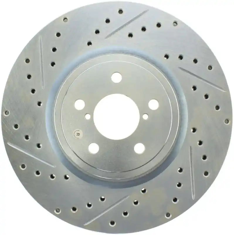 StopTech Drilled and Slotted Sport Rotors are 1-piece direct replacement brake discs for factory brake systems and stock calipers that look great behind your wheels – and offer significantly improved braking performance. The unique cross-drilling and slotting aids with heat and brake dust dispersal; prevents glazing of the pads; adds bite and improves wet and dry braking performance. Built to last; the black e-coating provides protection from corrosion and the high carbon metallurgy (in most applications) offers quieter operation; better crack resistance and increased performance.