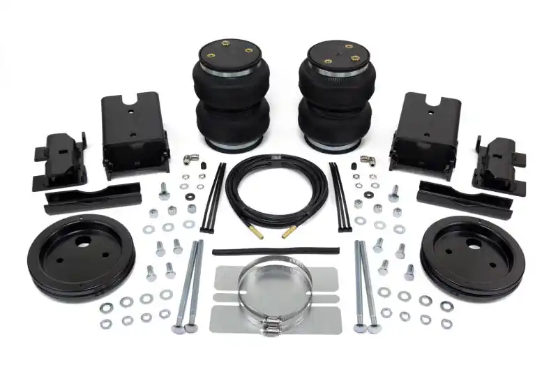 LoadLifter 5000 ULTIMATE adjustable air spring kits feature all of the benefits of our heaviest rated air spring with the addition of an internal jounce bumper inside the spring for the ultimate in ride comfort. An Air Lift exclusive product. Fits vehicles with in-bed hitches. Tow and haul the heaviest loads with safety and comfort with LoadLifter 5000 ULTIMATE. Works with vehicle’s leaf springs to provide up to 5,000 lbs. of front load leveling capacity and keeps the vehicle riding stable, level and comfortable whether loaded or unloaded. Fully adjustable from 5 to 100 PSI. The closed-cell urethane foam jounce bumper inside the ULTIMATE air springs provide a cushion of air that absorbs shock, eliminates harsh jarring on rough roads and protects vehicles carrying heavy loads. Never bottom out again with the ULTIMATE. LoadLifter 5000 ULTIMATE air springs are maintenance free. Safely run with zero air pressure because of the internal jounce bumper. Replaces factory jounce bumper that is sometimes removed when adding air springs. Easy to install in less than 2 hours. Includes industry-exclusive 60 Day No Questions Money Back Guarantee! Includes the most comprehensive Lifetime Warranty in the industry—covers all kit contents including brackets, fittings and air line. Air springs are built like a tire and are reinforced by durable, 2-ply fabric for maximum strength. Exclusive upper and lower roll plates included. Protect the springs from sharp edges, such as brackets or the frame. The kit includes 2 air springs, brackets, air lines, Schrader valve and all of the hardware needed for installation. Includes fully illustrated instruction manual. Add an Air Lift on-board air compressor system to inflate and deflate air springs with the touch of a button from inside or outside of the vehicle.