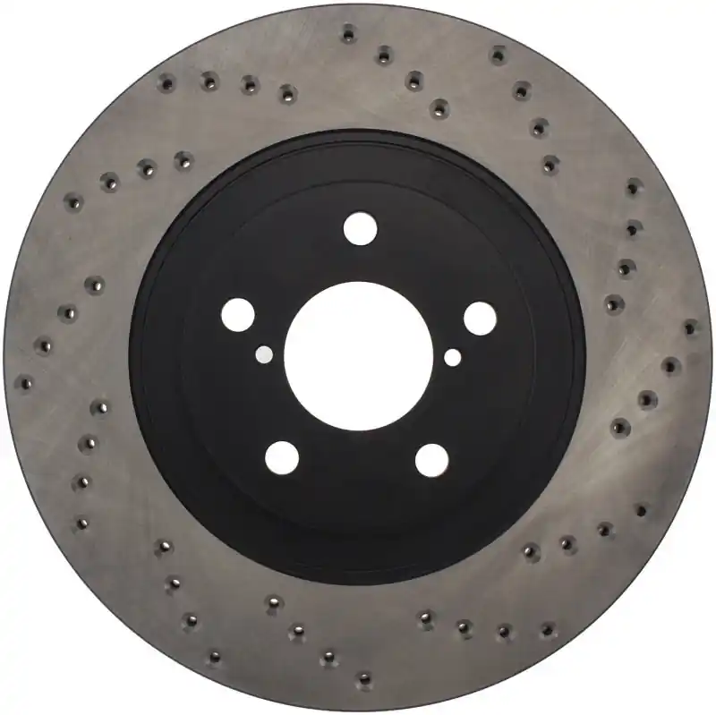 StopTech Drilled Sport Rotors are 1-piece direct replacement brake discs for factory brake systems and stock calipers that look great behind your wheels – and offer significantly improved braking performance. The unique cross-drilling aids with heat and brake dust dispersal; prevents glazing of the pads; adds bite and improves wet and dry braking performance. Built to last; the black e-coating provides protection from corrosion and the high carbon metallurgy (in most applications) offers quieter operation; better crack resistance and increased performance.