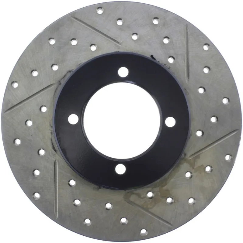 StopTech Drilled and Slotted Sport Rotors are 1-piece direct replacement brake discs for factory brake systems and stock calipers that look great behind your wheels – and offer significantly improved braking performance. The unique cross-drilling and slotting aids with heat and brake dust dispersal; prevents glazing of the pads; adds bite and improves wet and dry braking performance. Built to last; the black e-coating provides protection from corrosion and the high carbon metallurgy (in most applications) offers quieter operation; better crack resistance and increased performance.