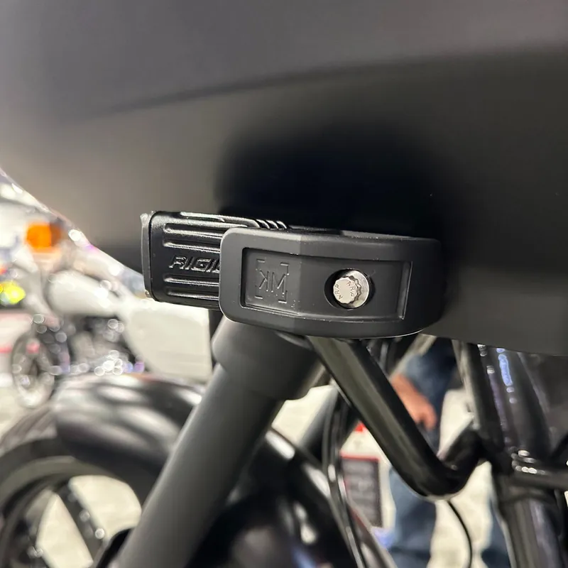 series. For those that want a little more for their Road Glide, while still maintaining that streamline ultra sanitary aesthetic. These mounts are tucked in tight to the fairing while keeping fastener visibility to a minimum. It’s all about Kleenliness! Mounts will come in raw or gloss black and include all necessary mounts, hardware, wiring harness and lights included.