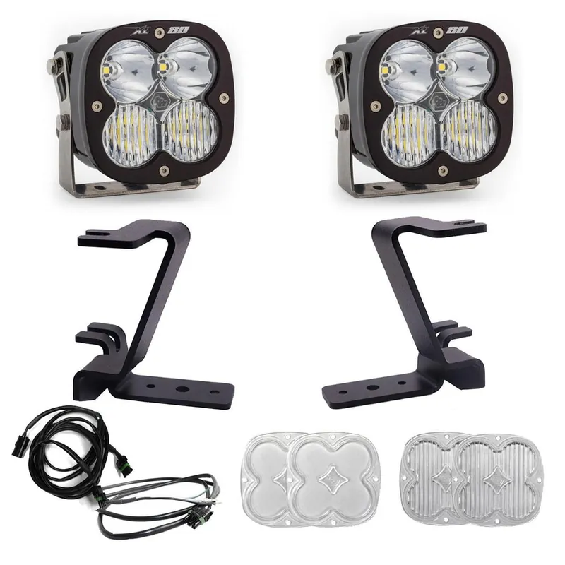 This comprehensive two-light kit comprises of XL80s with 9,022 raw lumens each, mounting brackets, an option of a toggle switch or upfitter wiring harness, and all essential components, ensuring a seamless installation process.